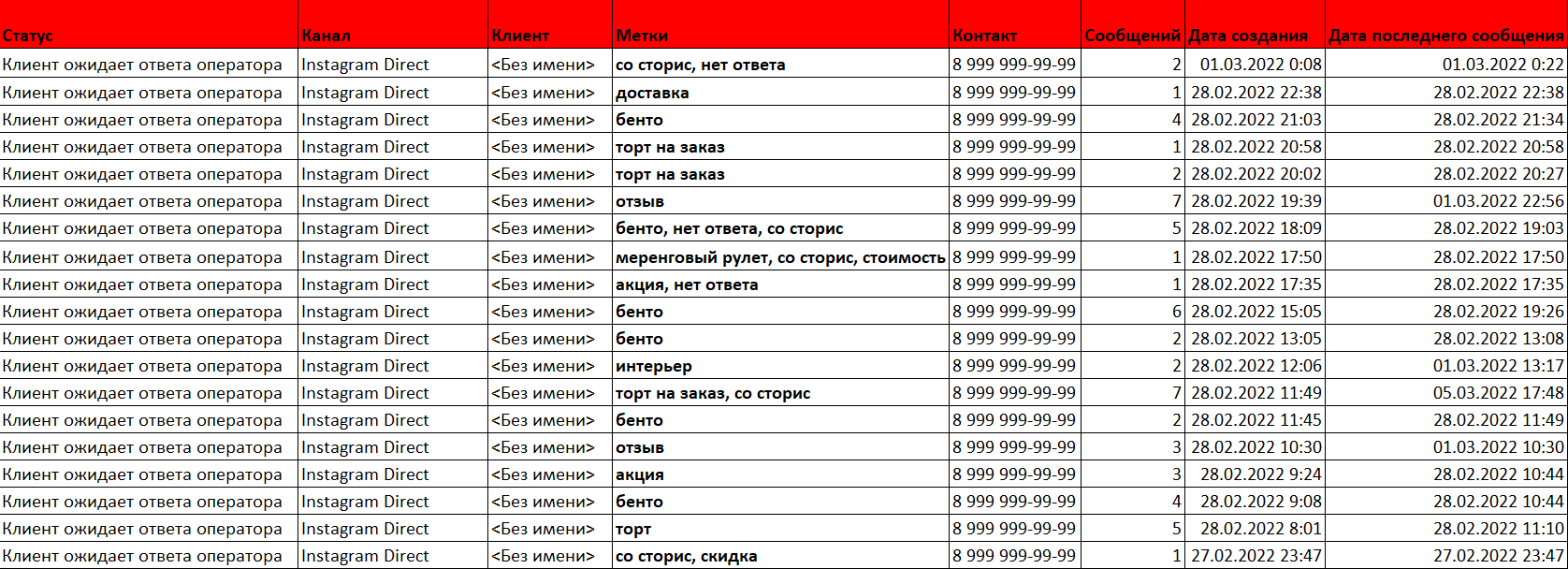 - В таком отчёте мы фиксировали обращения, а не заказ. Купил ли человек из комментиков торт, было неизвестно.