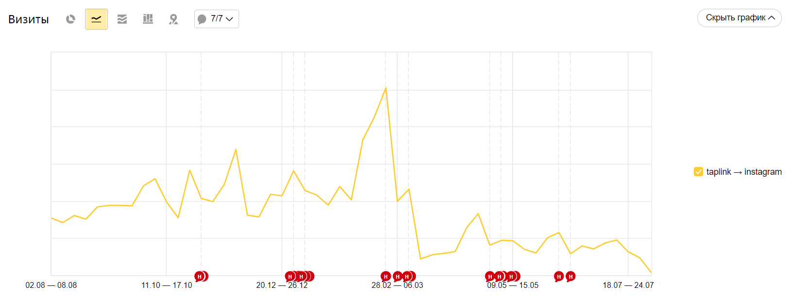 Обратите внимание, как изменился трафик из соцсетей после блокировки Инстаграма в марте 2022.