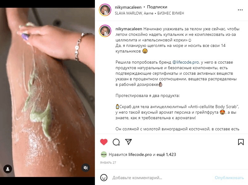 Мы также заметили много положительных комментариев о продуктах под рекламными публикациями у блогеров.