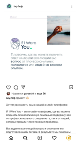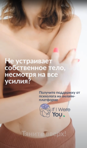 IfIWereYou — сайт (платформа), где любой желающий может получить психологическую помощь и поддержку как от профессионального специалиста (психолога), так и от людей, которые прошли через похожие проблемы.