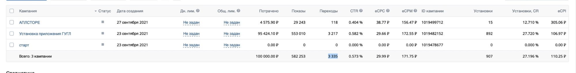 Получено кликов — 3 335.
