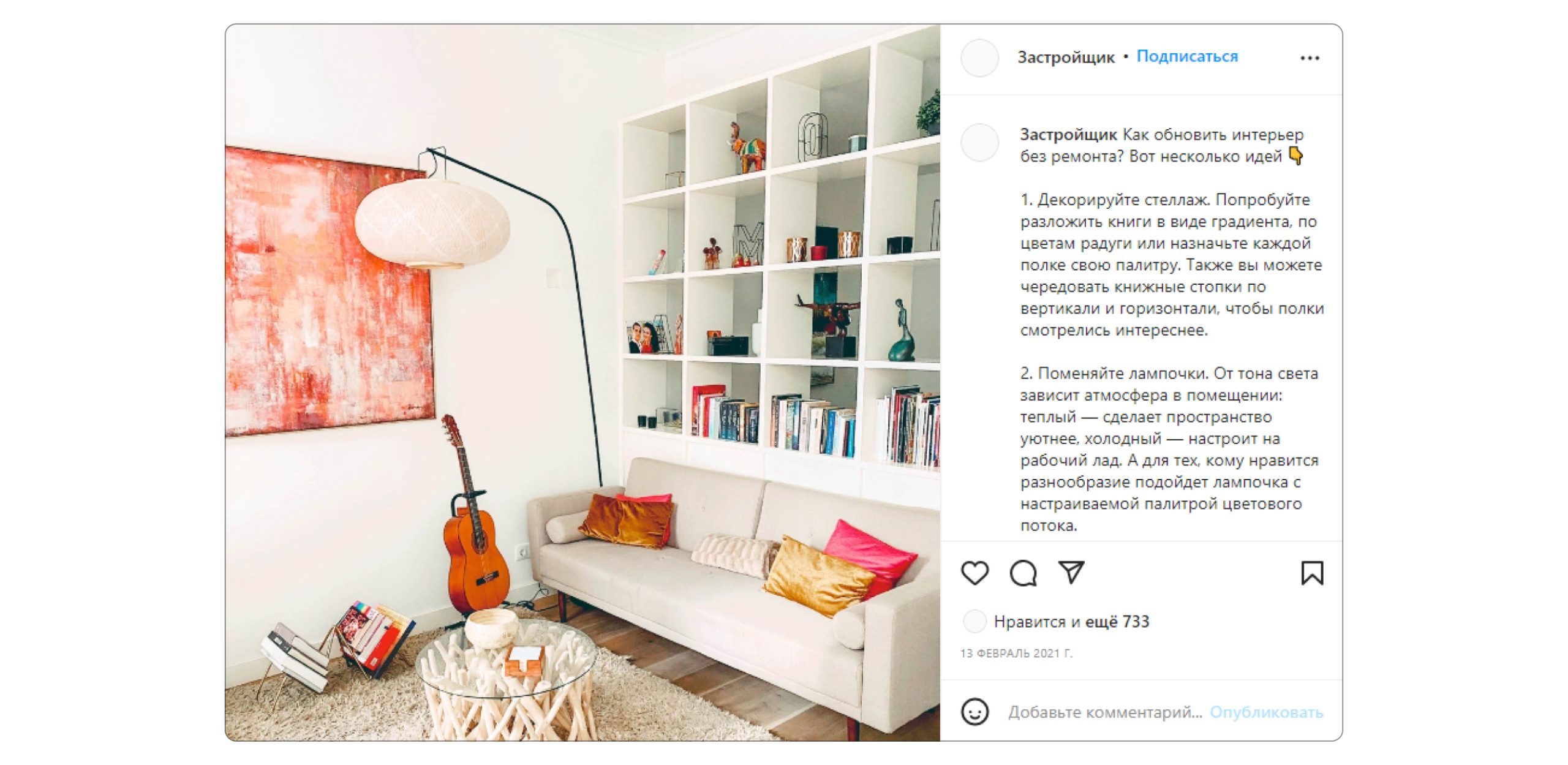 Потенциальным покупателям квартир так или иначе придется столкнуться с ремонтом и дизайном жилья. Поэтому в контенте мы использовали экспертные статьи. Например, рассказывали о трендовых цветах в интерьере и о практичных предметах мебели.