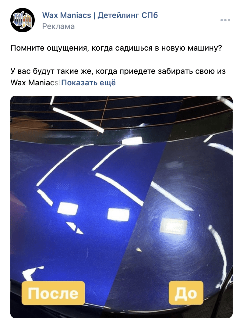 Лучше всего работают объявления в формате до/после и видео процессом/результатом работы.