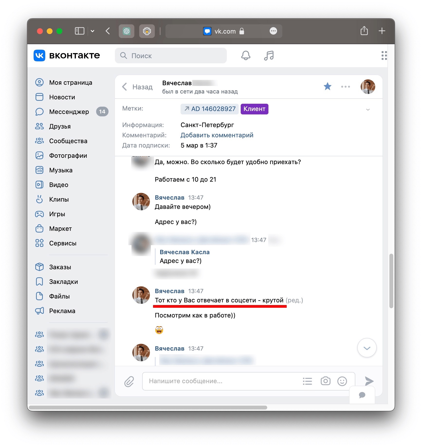 Качество общения отмечают и клиенты, вот скрин переписки с одним из них: