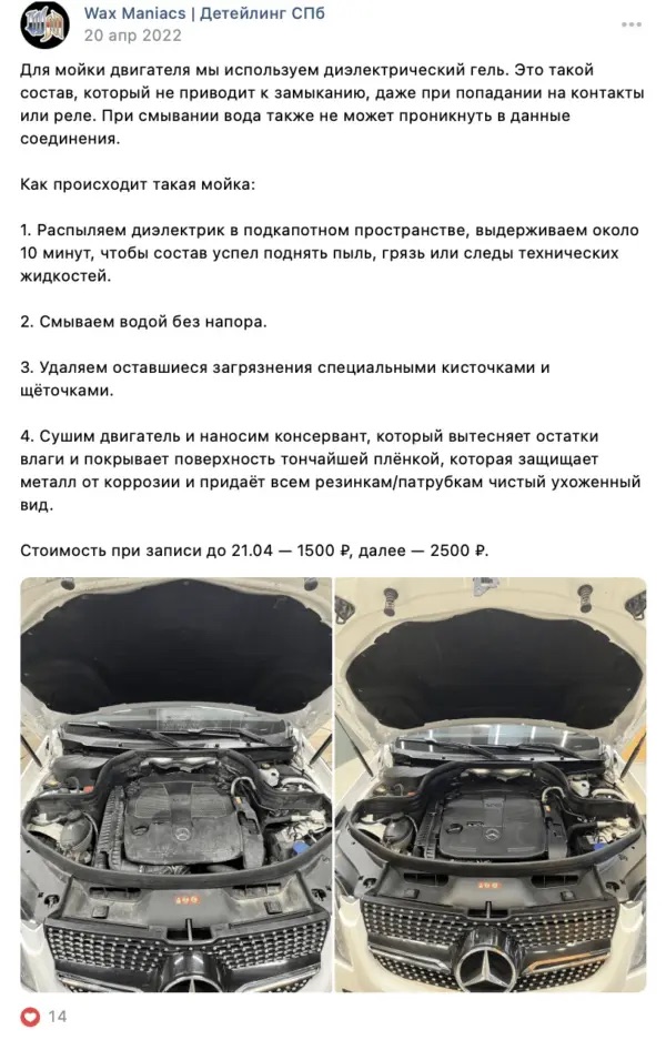 1. VK хорошо подходит для продвижения детейлинга. Кто-то говорит, что в VK нет платёжеспособной аудитории. Это не так, здесь много людей с деньгами, главное подходить ко всему с головой. Я знаю что и как делать, чтобы получать результаты.