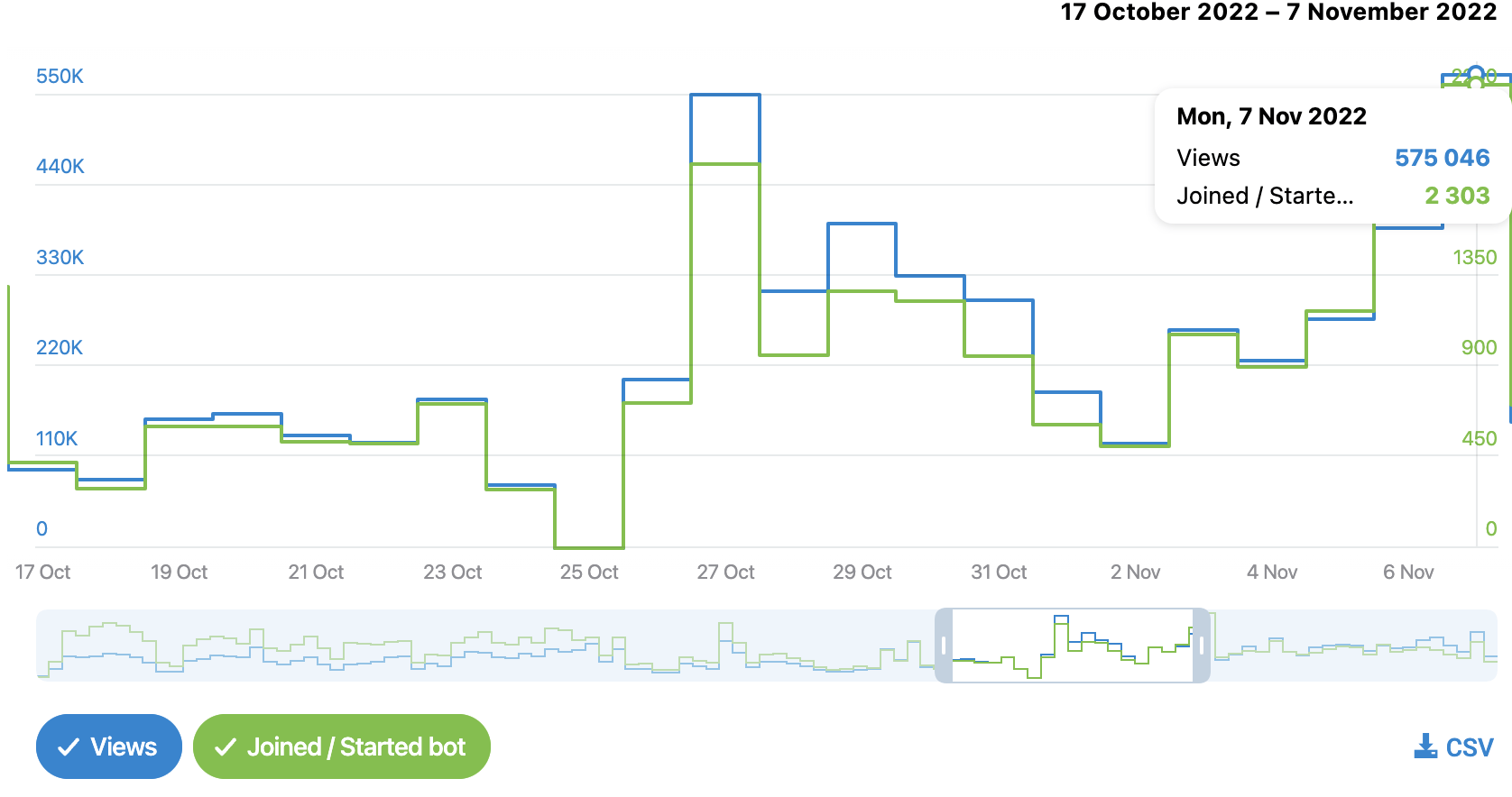 На момент старта работы в канале было около 20000 подписчиков, которые были приведены в канал «переливом» с другой соц. сети в феврале, и на которых уже совершался запуск.