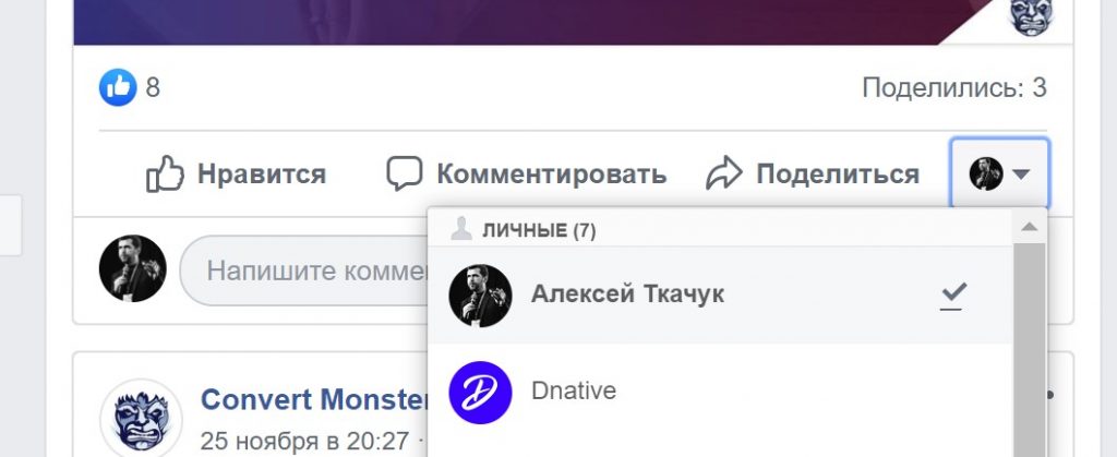 2) Открываю поле коментов и выбираю от какого имени писать от своего или от сообщества .