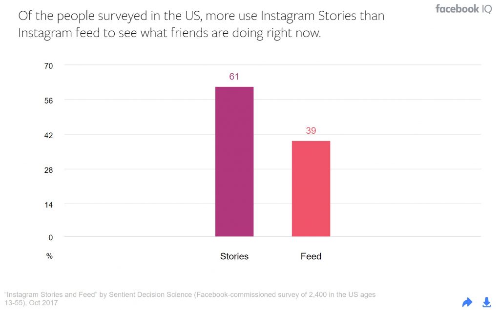 И есть ли инфо сколько процентов людей уже отказались от ленты и смотрят сториз. Конечно, все зависит от возраста, страны и т.д. и стоит делать свои исследования, но возможно уже есть готовые, от которых можно будет оттолкнуться?
