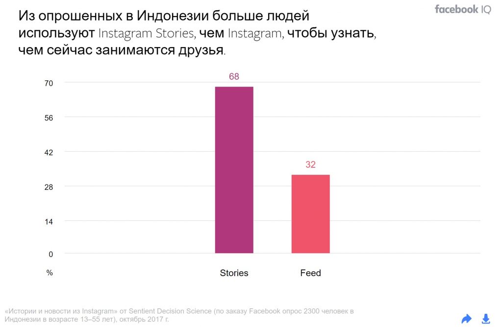 Ну и так далее. ПО разным странам есть, но всё +/- одинаково. Но октябрь 2017 года, фактически Stories только появились и ситуация сегодня, вообще несопоставимы.