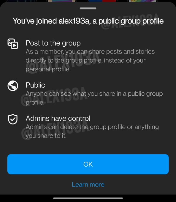 Мы тестируем возможность присоединиться к групповому профилю + делиться Stories, постами в ленте или роликами с членами группы, чтобы люди могли общаться с другими по своим интересам в выделенном пространстве.