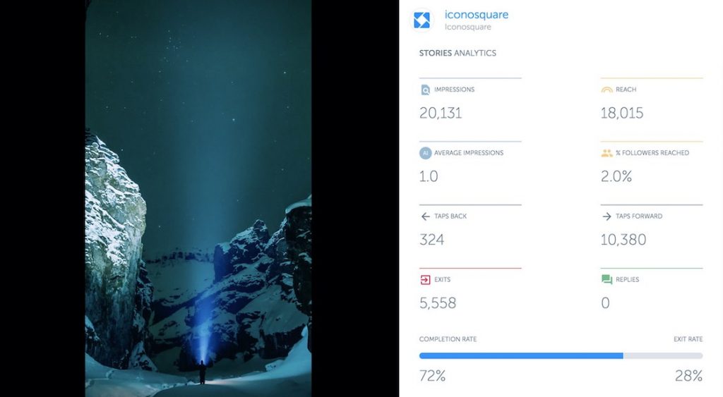 Подобная возможность уже стала доступной в iconosquare.com, правда тариф, который даёт возможность отслеживать охваты и всю красоту стартует от 29$ в месяц за один аккаунт. Чем больше профиль, тем дороже стоит.