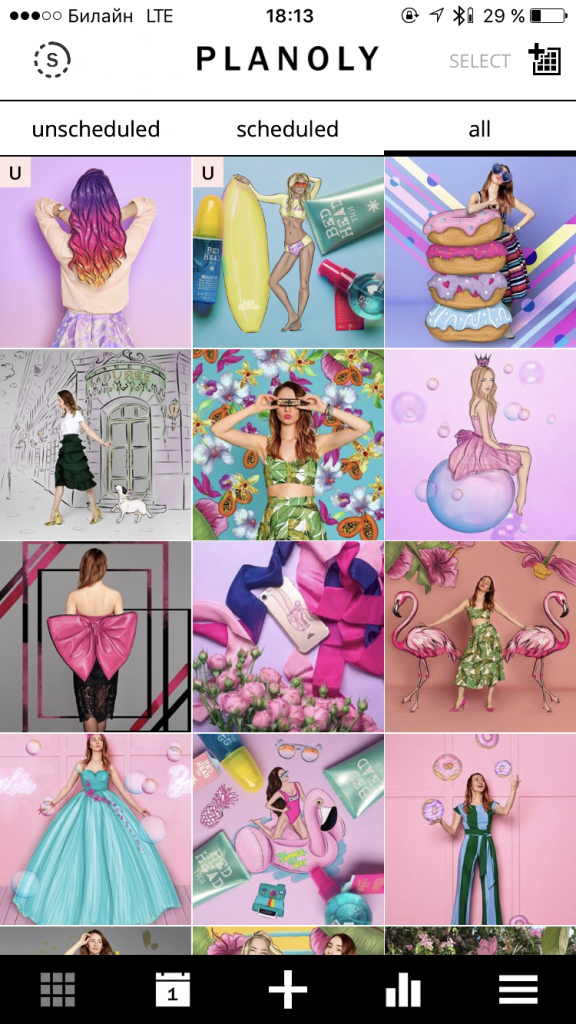 Сейчас зачастую у меня готово 15-20 кадров вперед, поэтому я пользуюсь Planoly, постоянно двигаю посты, чтобы добиться максимально приятного вида моей ленты.
