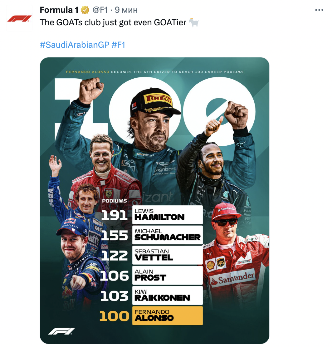 Конечно, по объёму аудитории аккаунты команд и самой Формулы далеки от футбола. Но и порог входа в спорт принципиально другой. Гонка = полтора часа 20 болидов ездят по кругу. Так можно описать суть спорта. С другой стороны, и футбол я могу охарактеризовать как «два десятка мужиков бегают за мячом полтора часа».