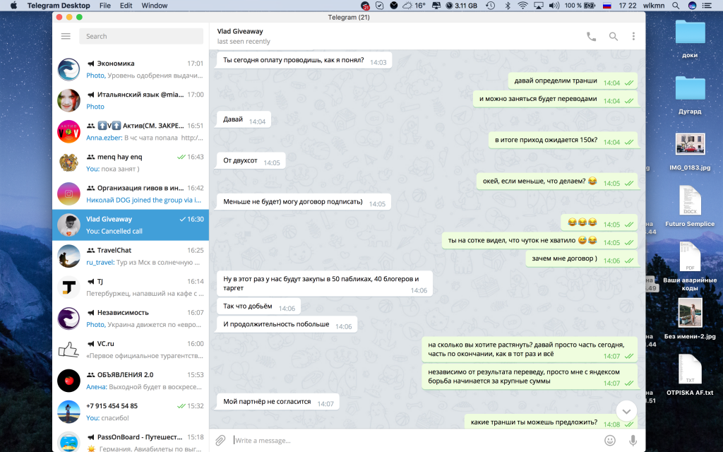- Нам удалось связаться с частью спонсоров провального giveaway, часть из них слила переписки Владу, так как рассчитывает, что их возьмут в следующую активность «в довесок».