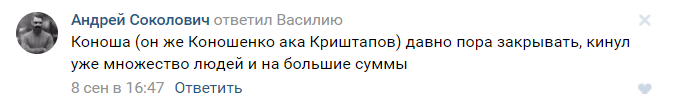 Даже в комментариях к посту в группе SMMщики нашлись пострадавшие от прошлой деятельности Коноша: